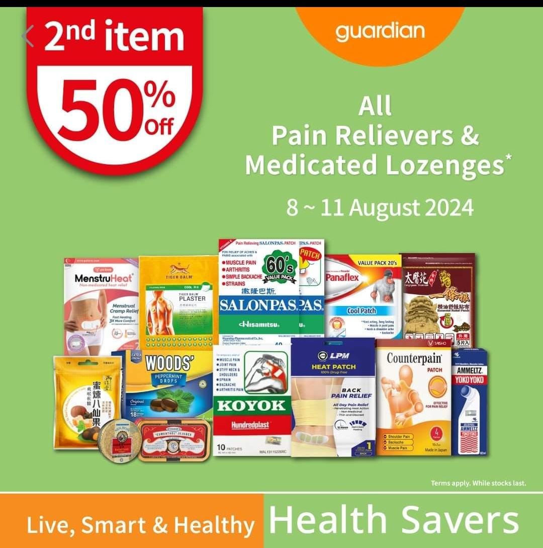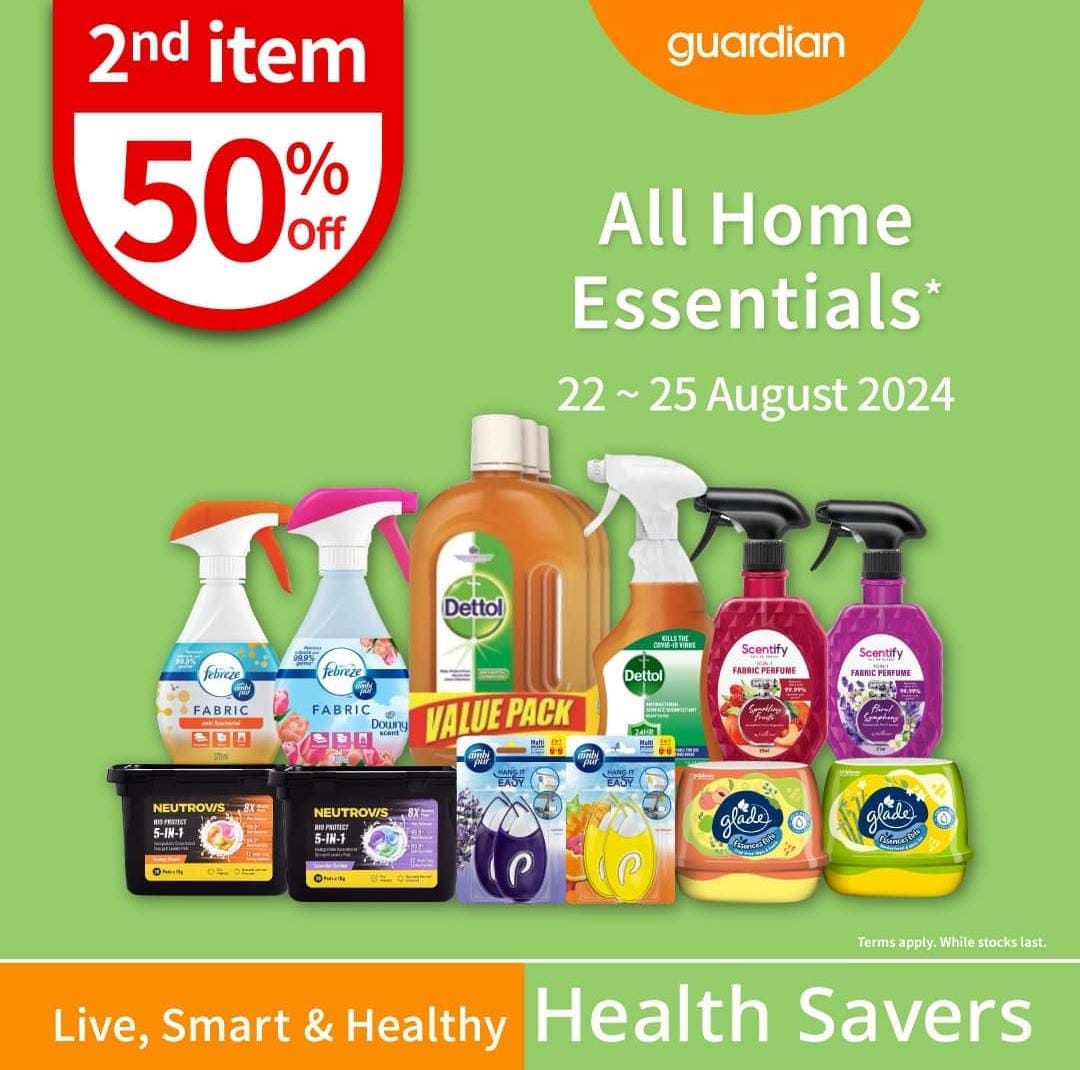 Buy what is needed at Guardian, Endah Parade and get 50% on 2nd. item.